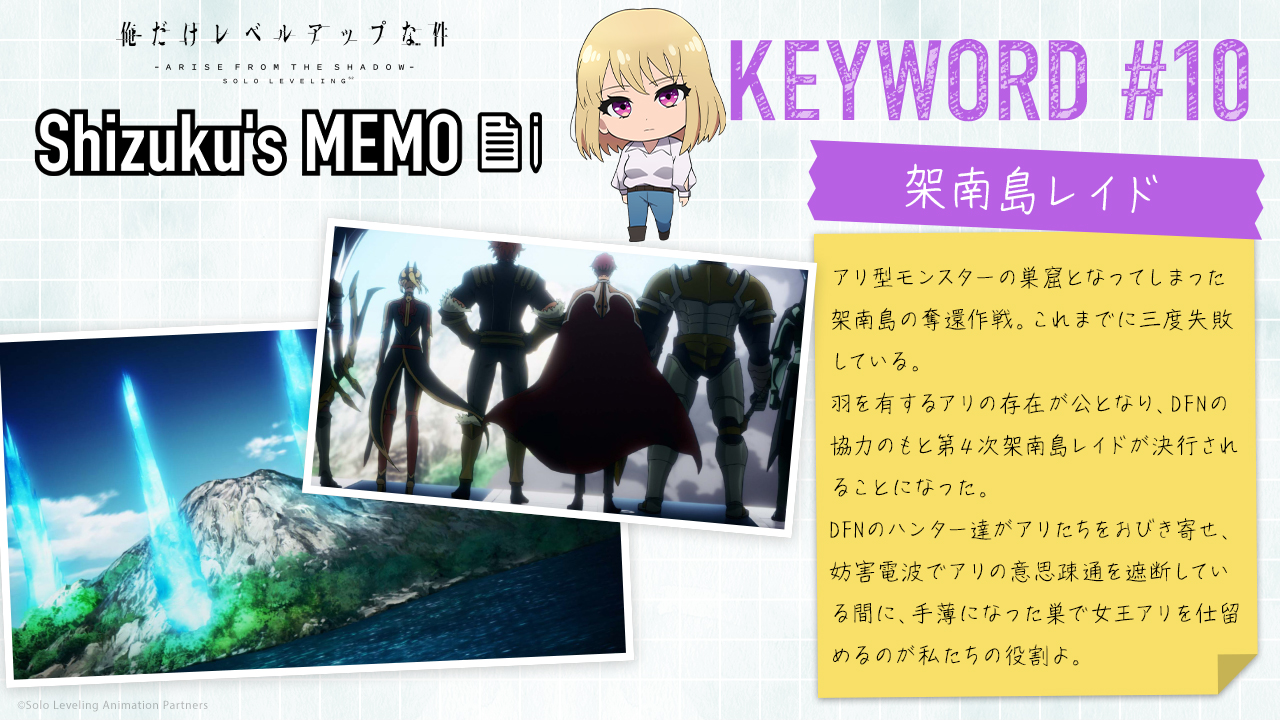 S級ハンター・向坂雫が「俺だけレベルアップな件」のキーワードを解説します🖊 #13 アイテム:悪魔王の短剣・長剣 #12 スキル:影の交換 #11 スキル:偽装 #10 架南島レイド #9 アイテム:命の神水 #8 アイテム:進入許可書 #7 アイテム:貪欲の玉 #6 スキル:君主の領域 #5 スキル:隠密 #4 溺睡症 #3 スキル:支配者の手 #2 影の抽出 #1 レッドゲート